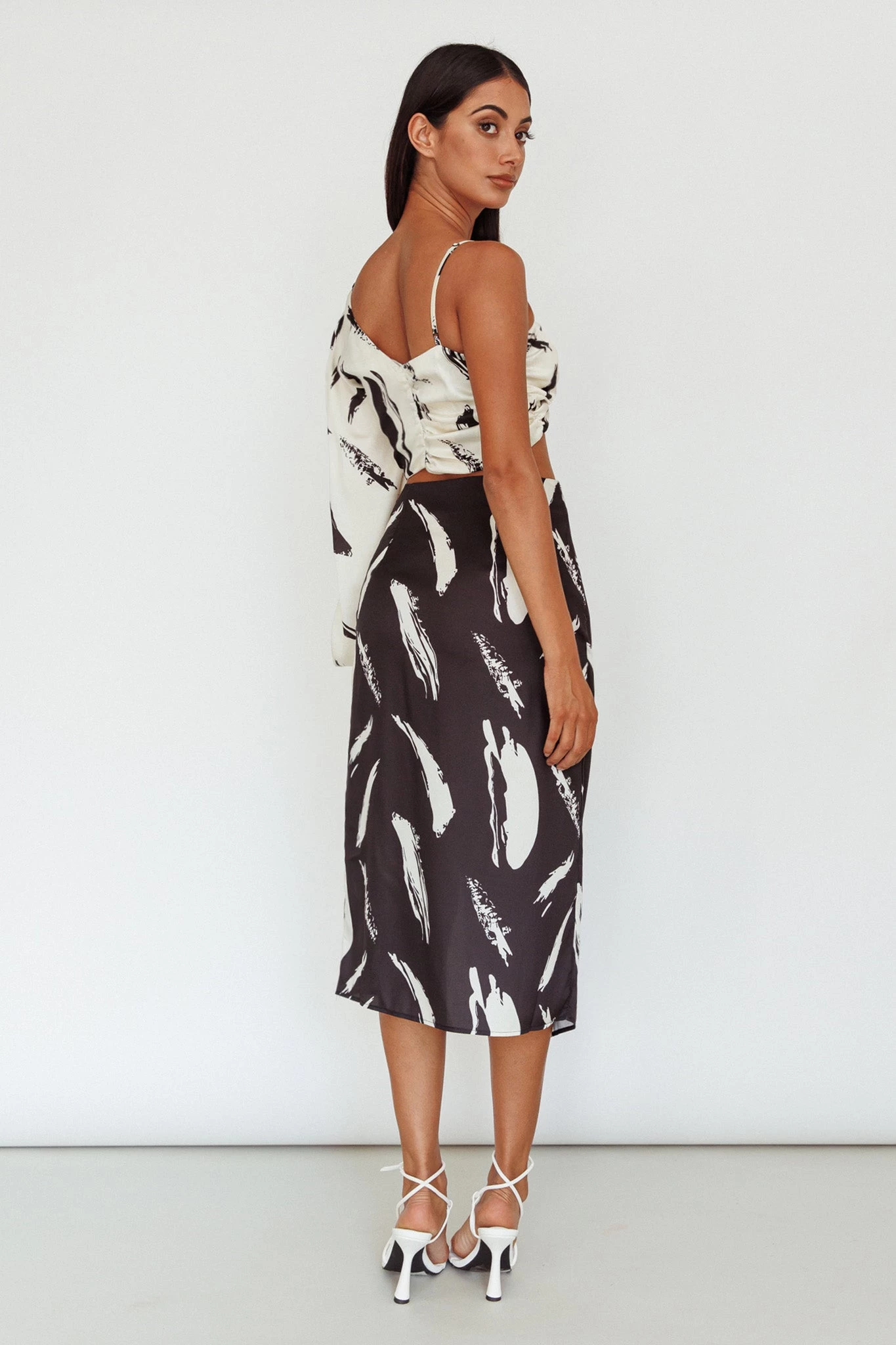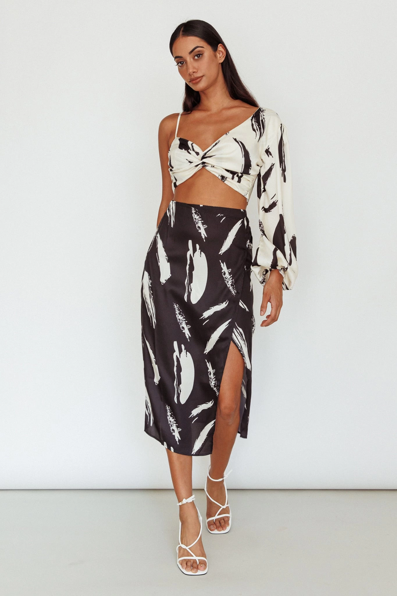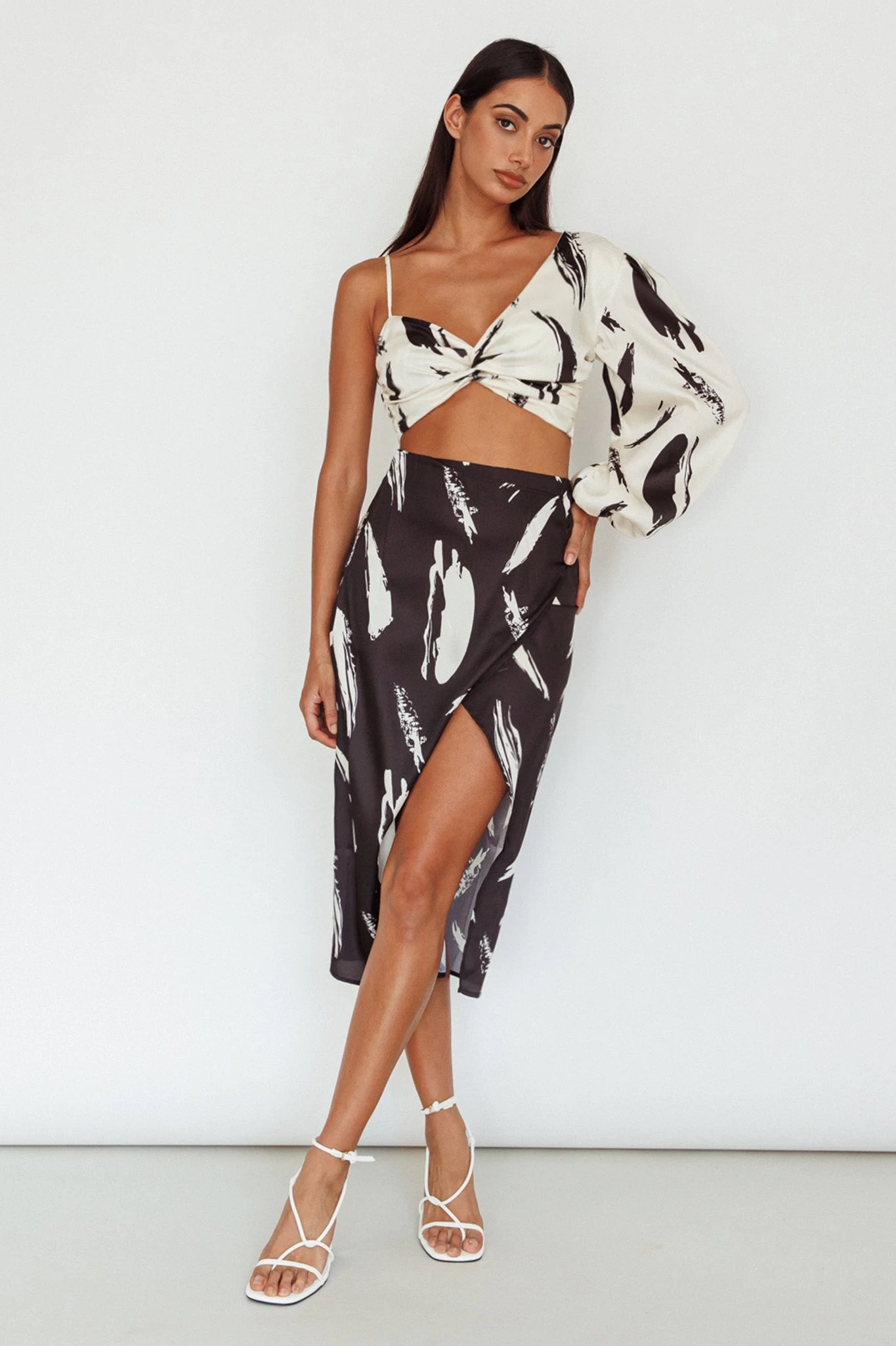 Make an entrance in our pretty Amina Midi Skirt. We are in love with its breezy, open split style and chic print. Perfect for weekend cocktails with your besties. Team it with its matching top and mules for a look we are loving.