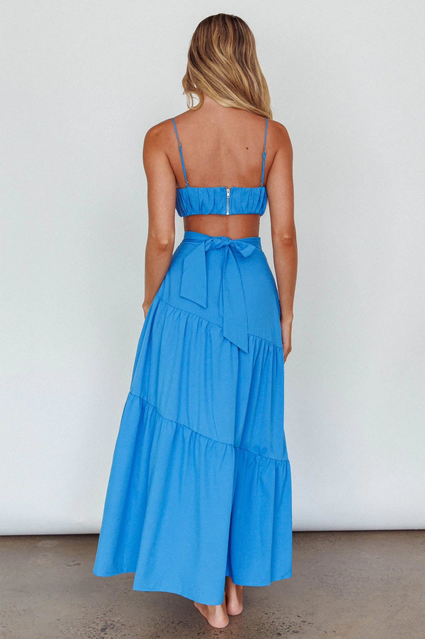 You’ll feel like packing your bags and escaping for the weekend in our pretty Bondi maxi skirt. Featuring a tie in the waist and flounce hem, it’s perfect for warm weekends at your fave lunch spot or strolling the vintage markets. Team it with its matching crop top to complete the look.