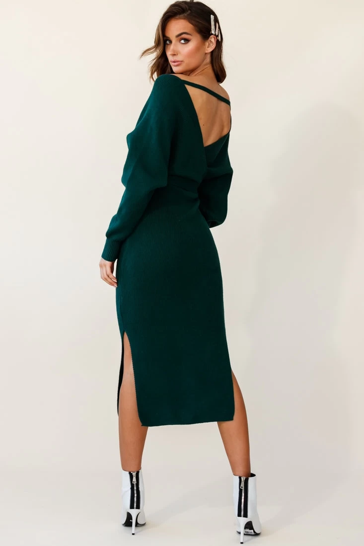 Snag yourself a cutie in our cozy but sexy Cameo dress. Featuring soft, knit fabric, long batwing sleeves, flattering crossover neckline and belted waist tie. We are loving the midi length with splits on either side. Perfect for snuggling up by the fire with a glass of wine, post romantic dinner date. Team it with boots and a beret for a cozy look we are loving.