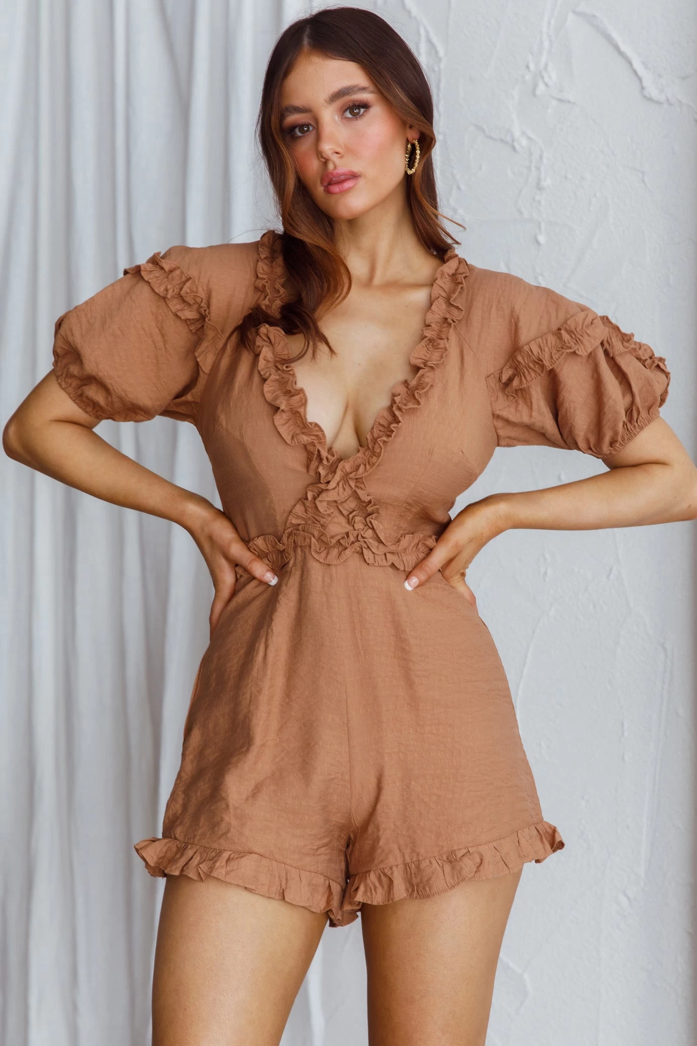 Make an entrance in our pretty Galatia romper. We are in love with its frill trim and feminine puff sleeves. Perfect for a girls day out or flirty dinner date. Team it with mules and a tote for a chic look we are loving.