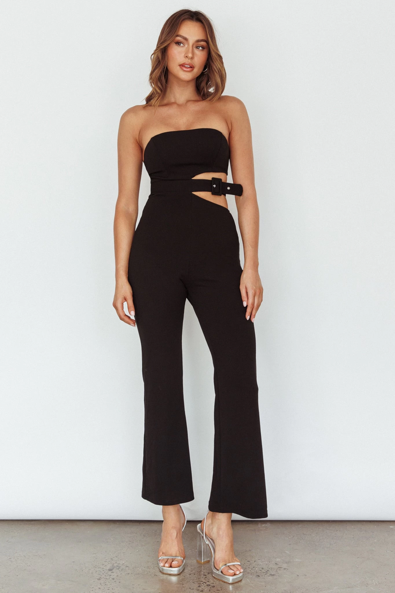 Make an entrance in our super hot Glisten jumpsuit. Featuring a cut-out waist with a buckle feature. It’s perfect for a birthday or a flirty date night. Team it with kitten heels and a saddle bag for an It Girl look.