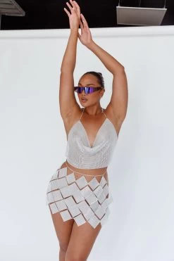 Light up the room in our stunning Grazie mini skirt. Featuring sequin fabric and ruching detail, it’s sure to turn heads. Team it with our Venezia top and mules for a look that’ll send you straight to the best-dressed list.