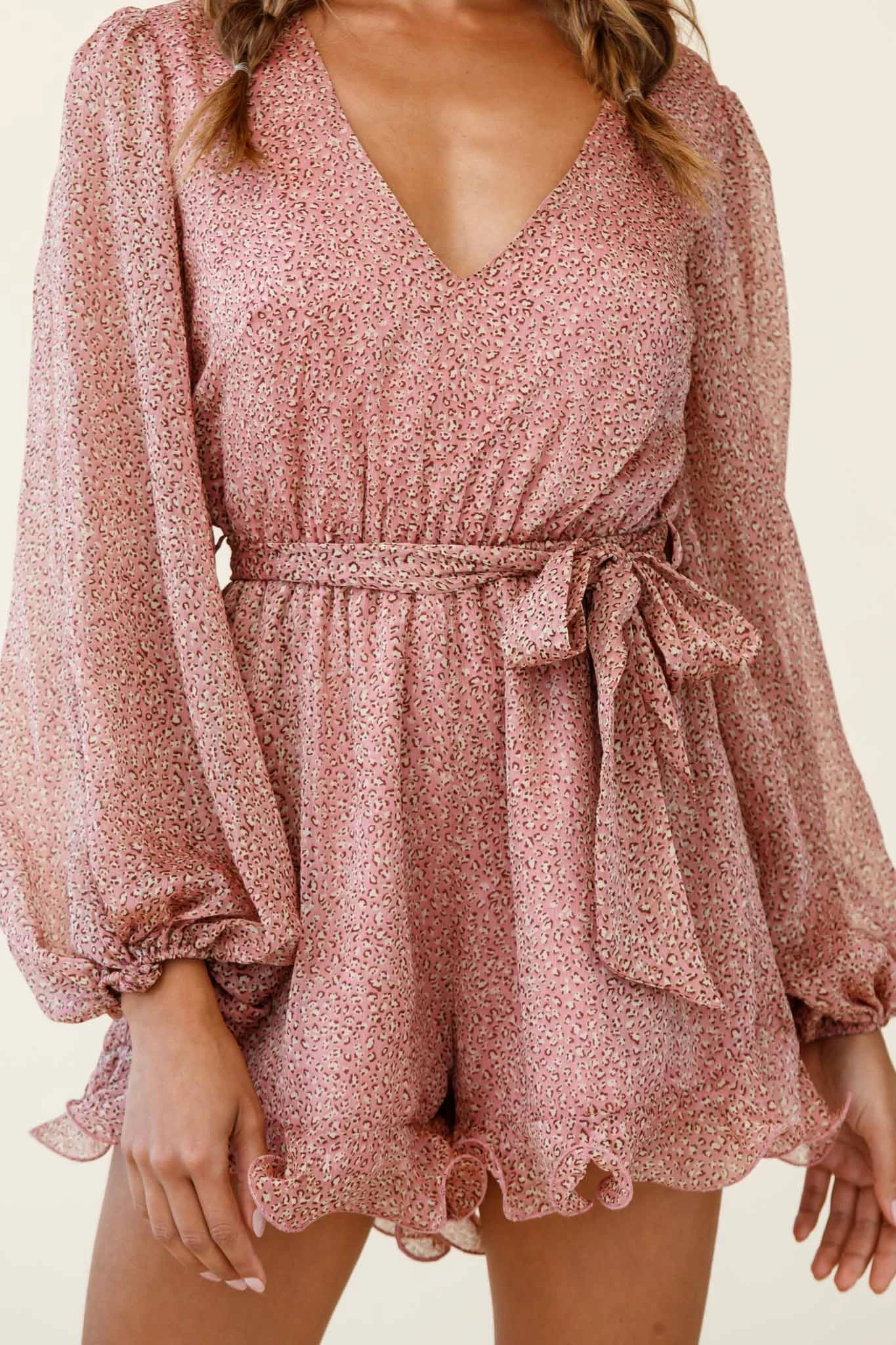 - Blush leopard print romper