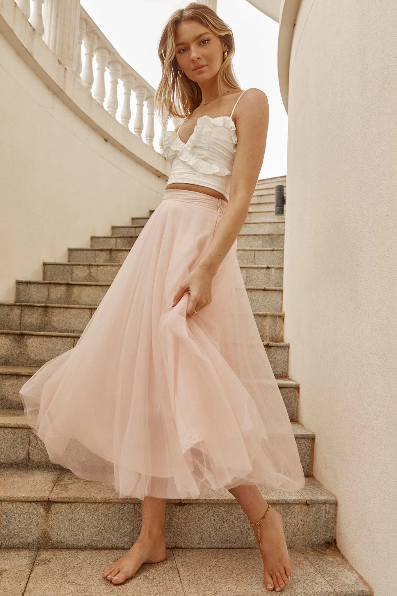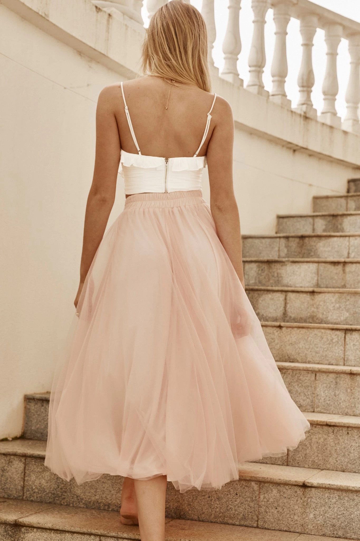 You are one classy lady in our elegant Jasmine midi skirt. Fully lined, it features a romantic mesh fabric throughout, A-line cut and elasticated waist. Perfect for brunching in Beverly Hills teamed with a crop top and mules.