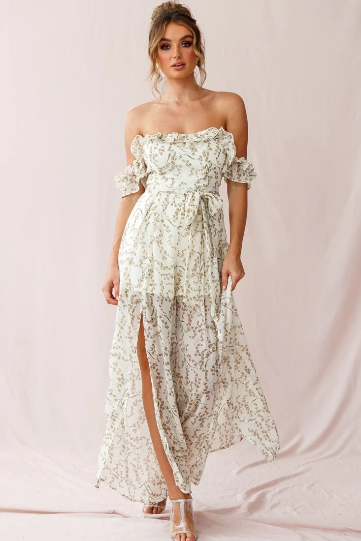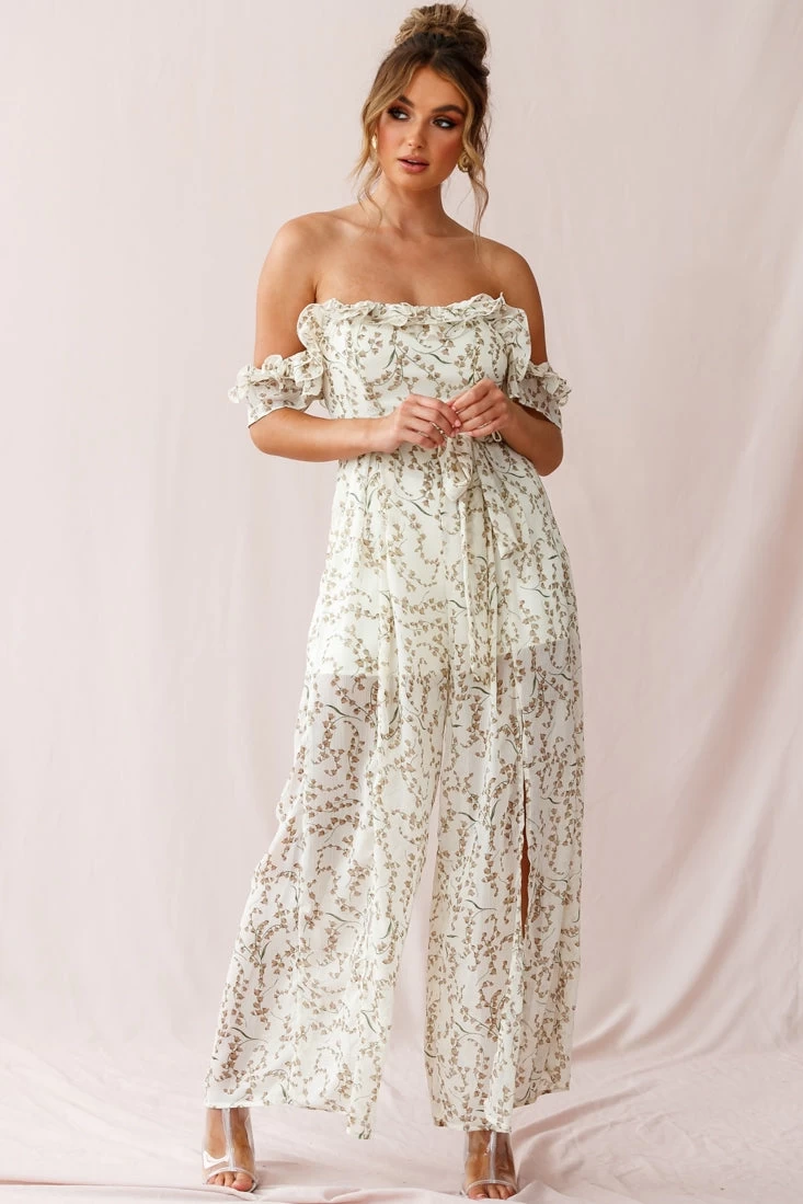 Chic and feminine, this jumpsuit is perfect for a morning at the farmers’ markets or beach boardwalk strolls with bae. Featuring a short lining and a bardot ruffle-trimmed neckline and sleeves; it’s classy, but just the right amount of sexy with its breezy splits up the front of each leg. It also features a belted waist-tie and soft chiffon fabric. Pair with espadrille wedges and a straw tote for a look we are all about.