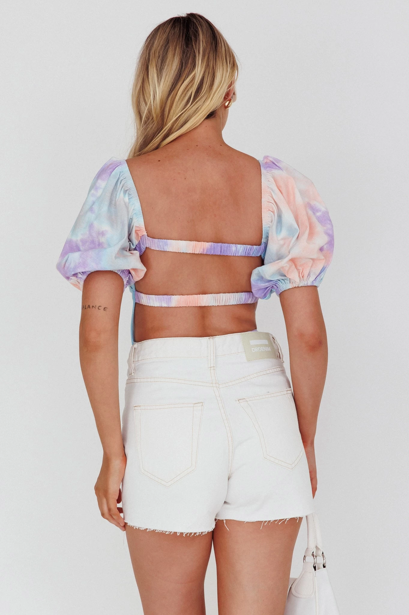 - Purple/blue tie-dye bodysuit