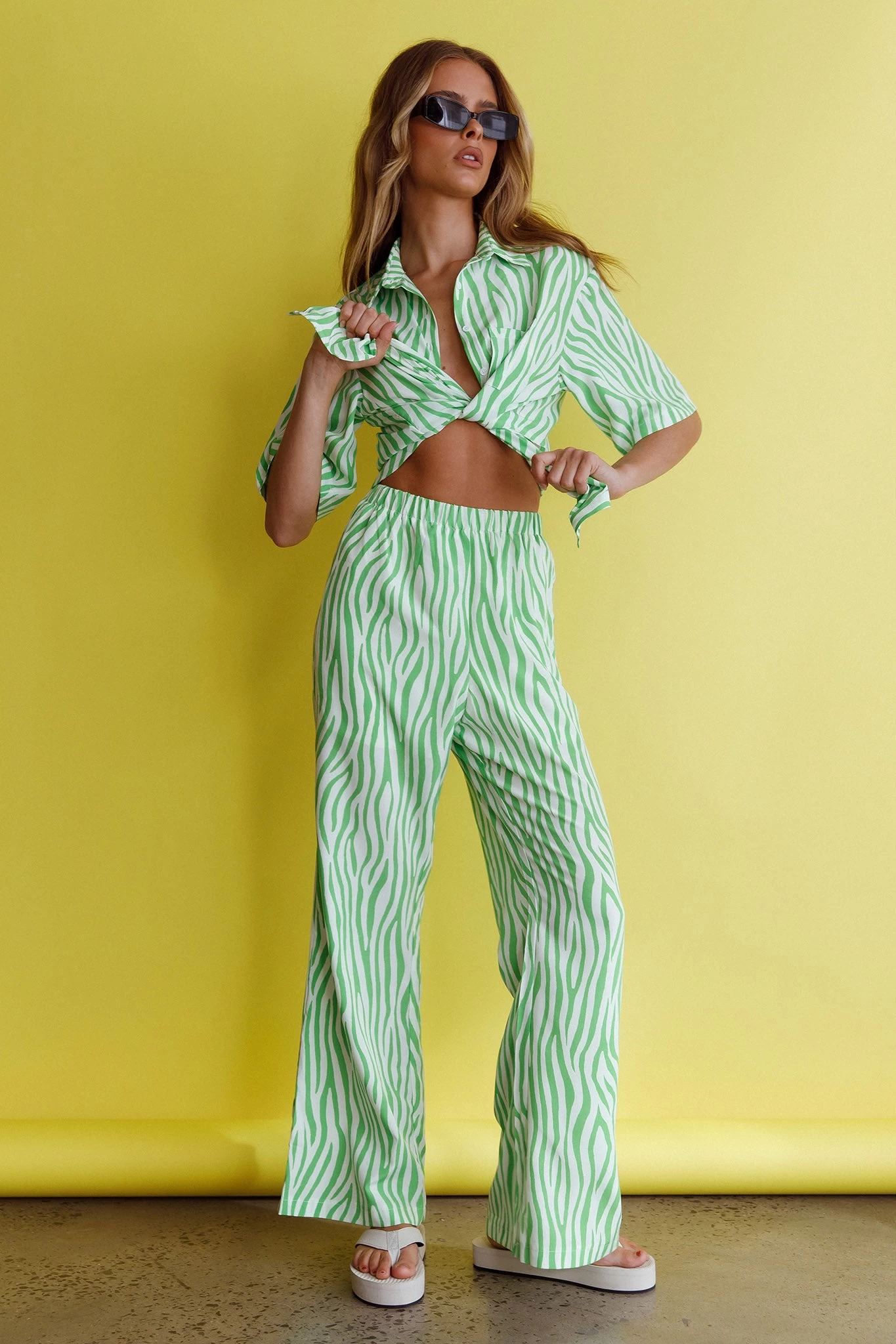 Hey there, cutie! We are loving the print on our Just A Hunch shirt. Perfect for weekend brunch dates with your besties, it looks super cute paired with its matching pants or wear it with a denim skirt and mules for a look we are loving.