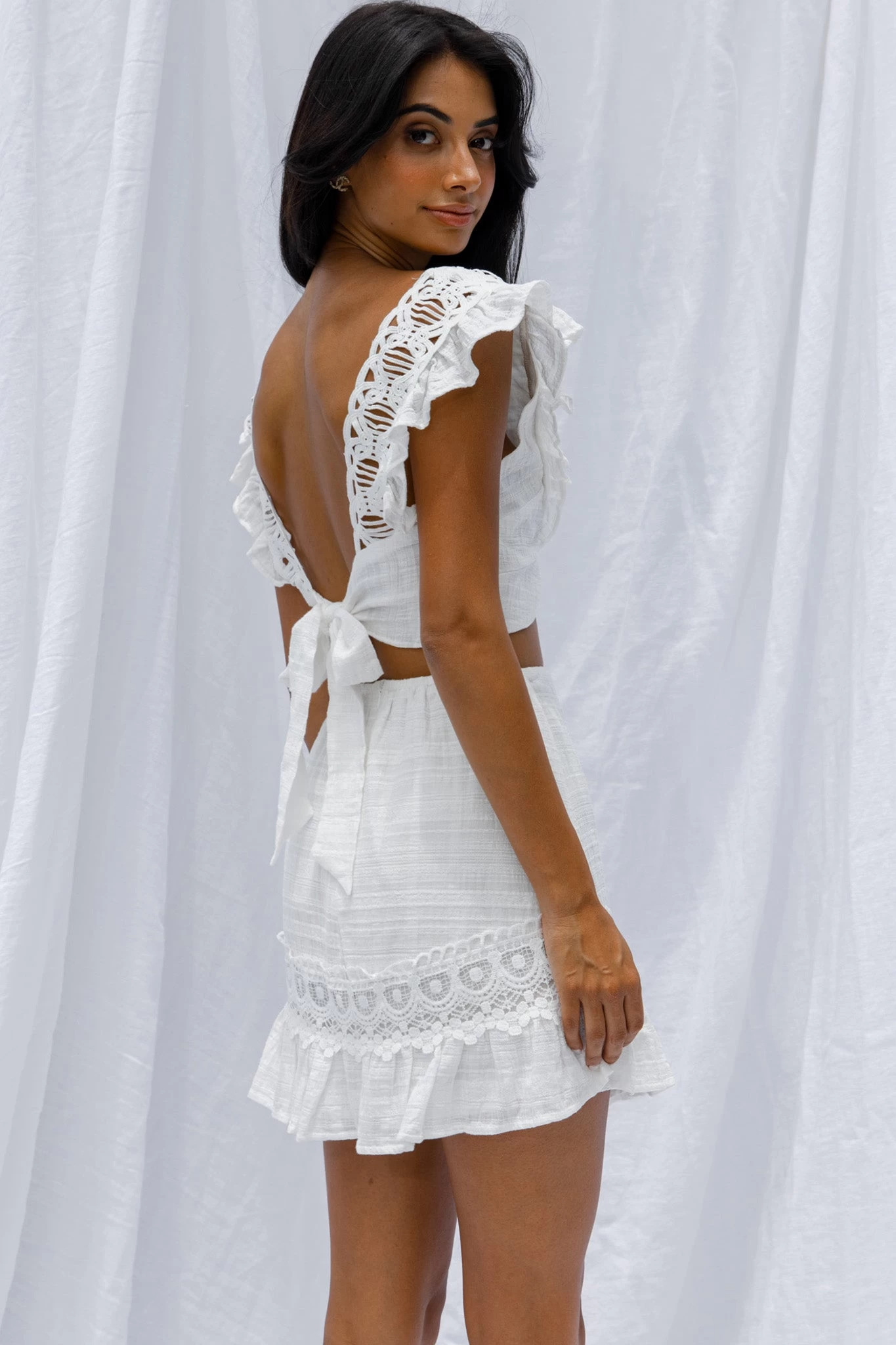 Get ready to escape for the weekend in our gorgeous Just Bliss mini skirt. Perfect for wine tasting on a Saturday or a Summer vacay in style. We are obsessed with its pretty embroidered lace trim. Team it with its matching crop top for a hot look we are loving.