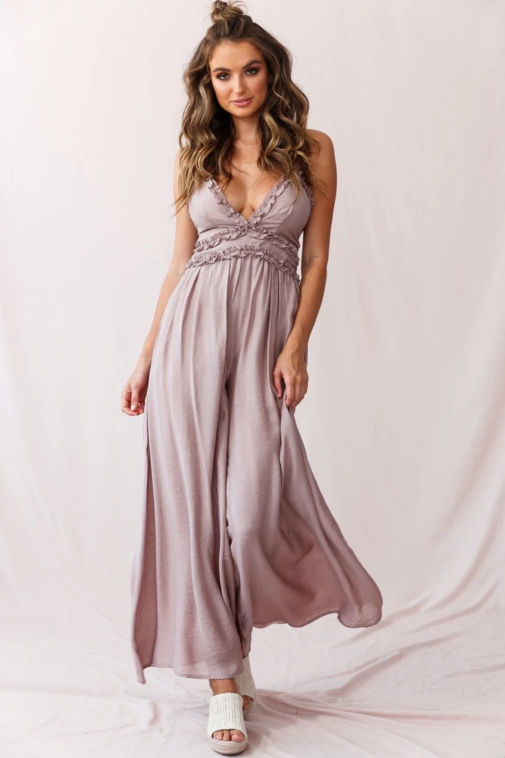 Laney. She’s ALL that. And you will be too in this super cute jumpsuit featuring adjustable shoulder straps, a delicate ruffle trim around the V-neckline and torso and breezy wide-leg style. Wear it on a girls’ night out with strappy nude heels or during the day to a BBQ pool party teamed with canvas wedges.