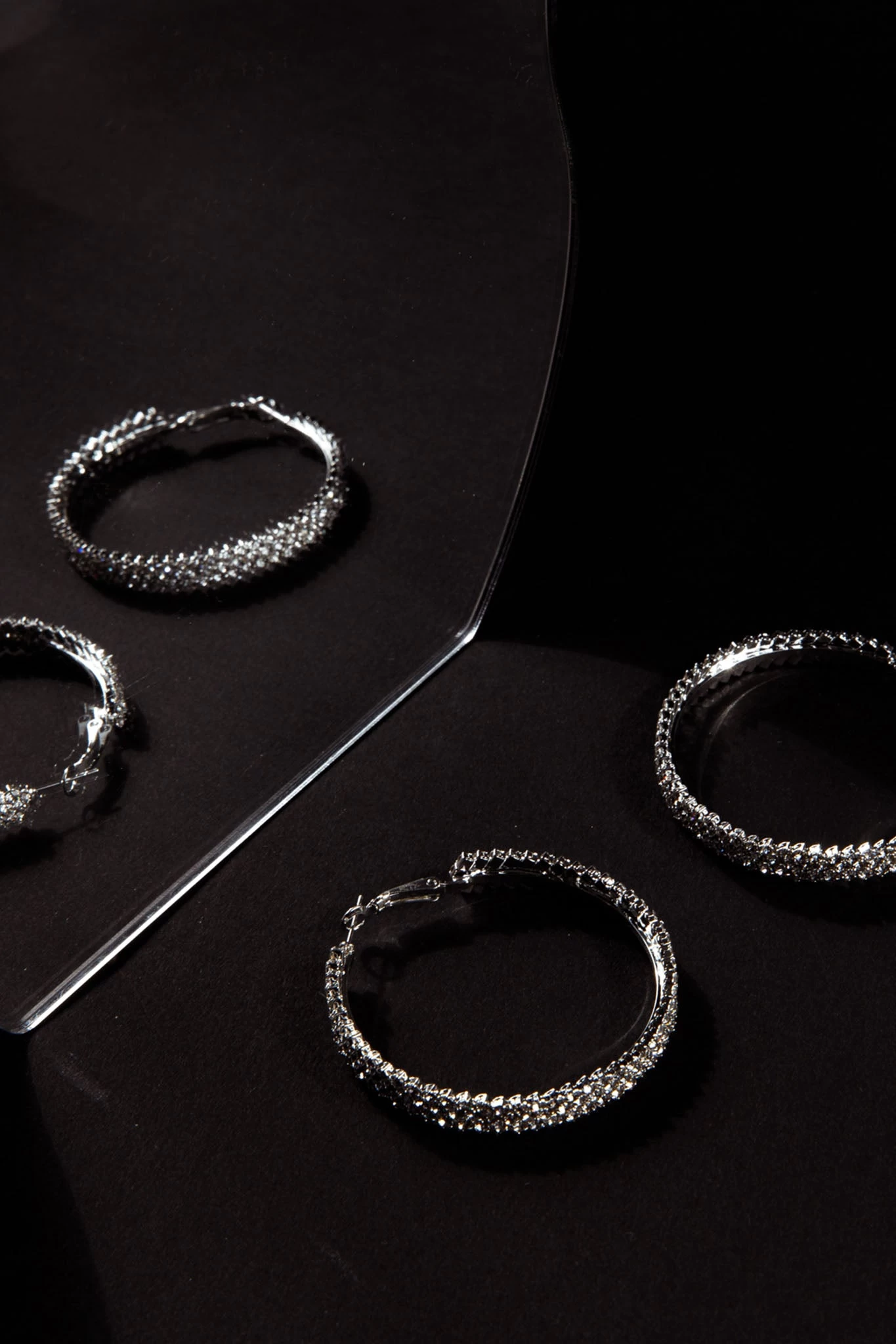 Channel your inner baddie in our hot Maddy hoop earrings. Made for the It Girl, our Maddy earrings feature a large, diamante-embellished hoop style. These earrings are a moment and are begging to be paired with some on-trend platform heels and a satin mini for a head-turning look.