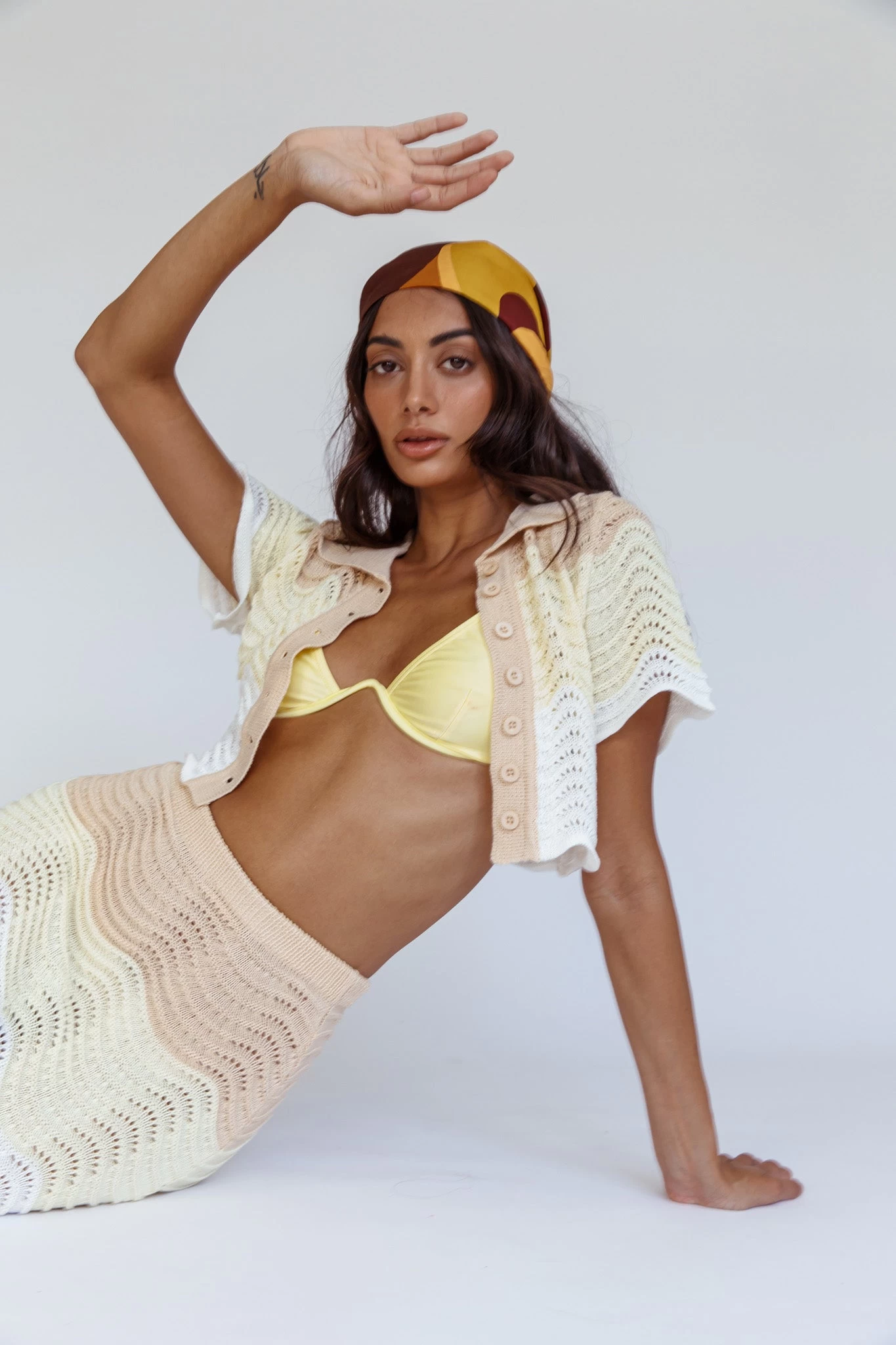 Breeze through your weekend in our chic May Blooms crop top. We are in love with its casual-cool vibes and on-trend crochet knit. Perfect for lunch dates with your besties teamed with its matching skirt and tan sandals.