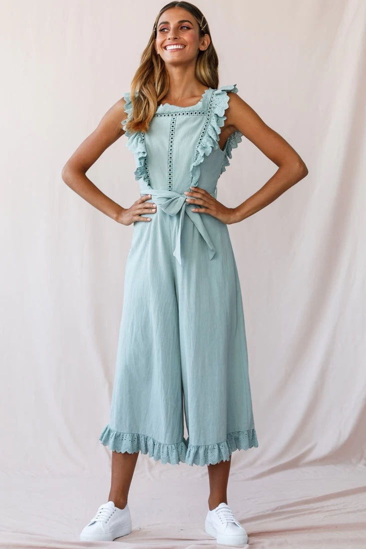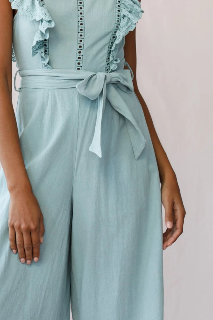 Meadow Ruffle Strap Open Back Midi Jumpsuit Sage
