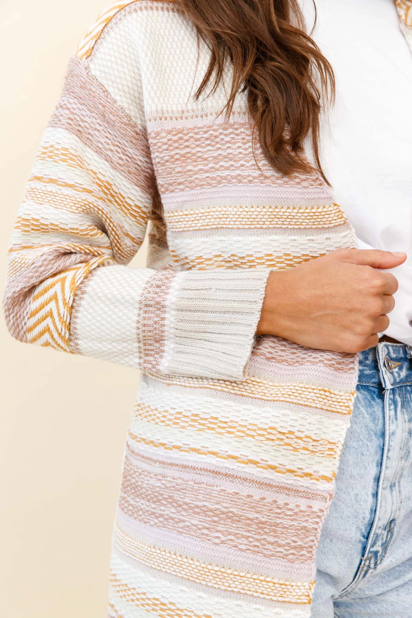 - Stripe beige cardigan
