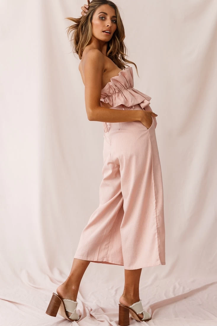 Thea Ruffle Crop Top Jumpsuit Blush