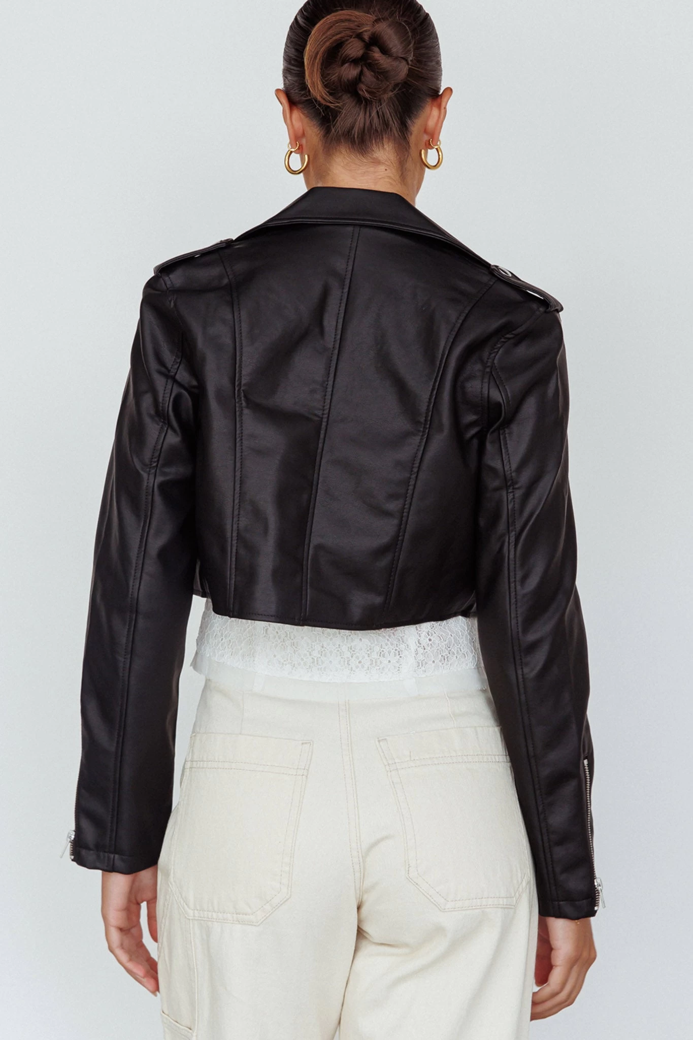 Make an entrance in our hot Toulouse jacket. Featuring silver hardware and a crop length. It’s perfect for a girls’ night out, thrown over your fave LBD and teamed with platform heels for an unforgettable look.