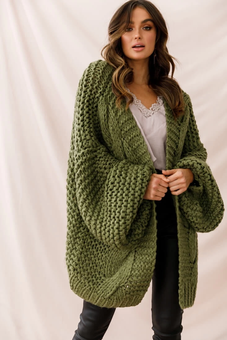 Perfect for cozying up at home or dinner out with the girls, our Vermont chunky garter knit cardigan is super casual yet cool. The loose, oversized fit allows you create trendy layered looks. The hem and opening of the cardigan feature a thick ribbing stitch, and the cable knit design down the front of each side add a cute design accent. We are loving the oversized baggy sleeves that really take the cozy factor up a notch. Wear it over jeans and a crisp white tee for a casual-chic look.
