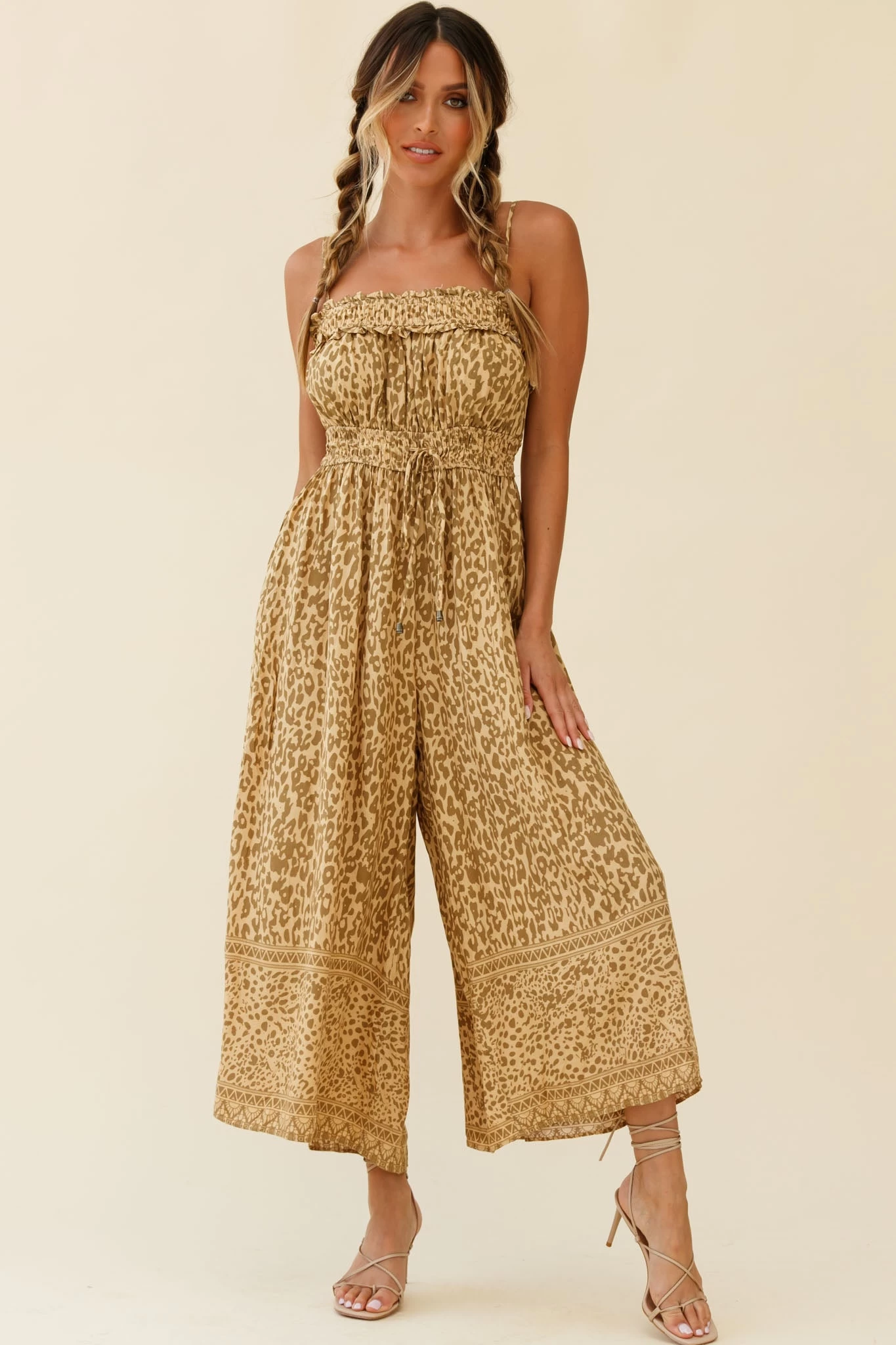 - Khaki animal print jumpsuit