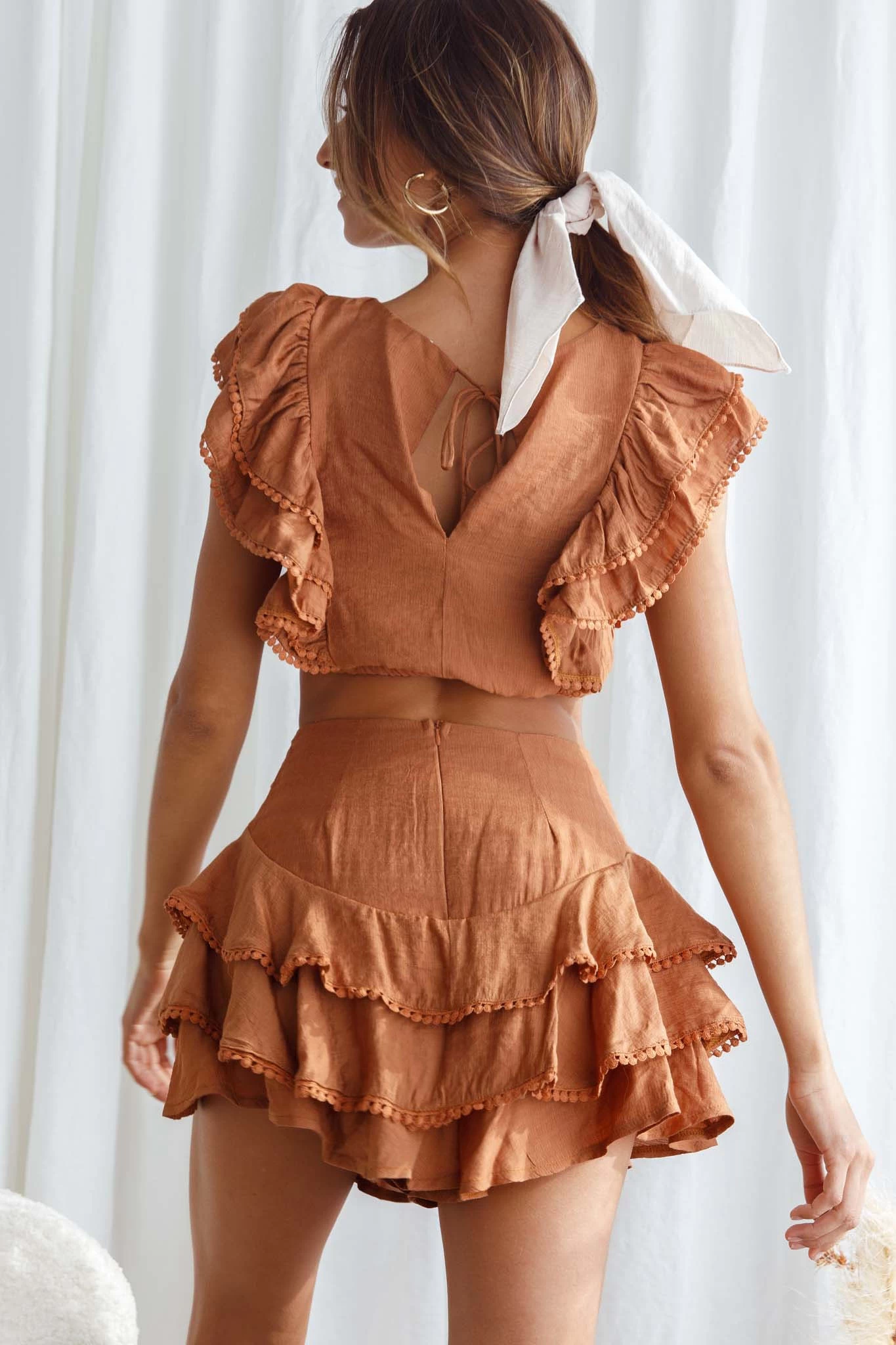Live your best life in our pretty Wild And Free shorts. Featuring unique pintuck pleat detail and layered ruffles, it’s sure to get you noticed! Wear it to Sunday brunch with your besties teamed with strappy, white mules and its matching crop top. Cute!